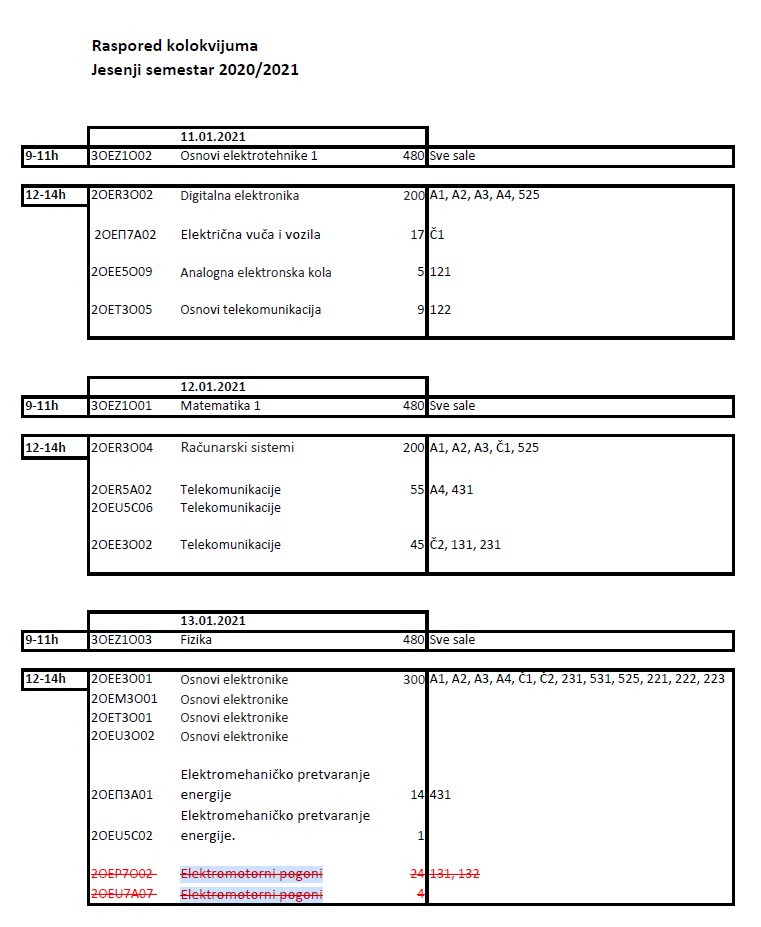 Објављен је распоред колоквијума за јесењи семестар школске 2020/2021. године.