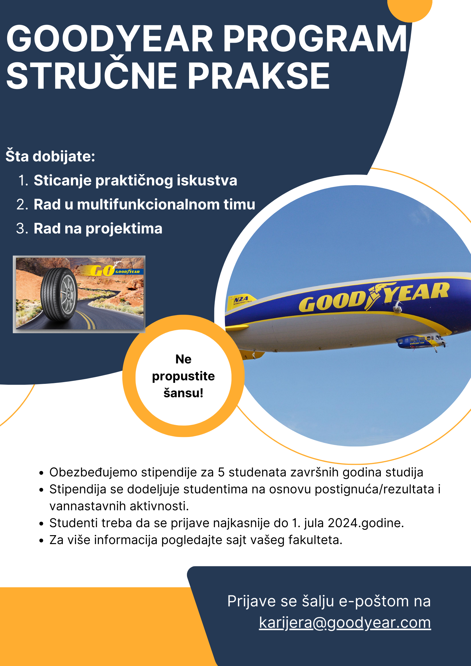 Компанија Goodyear Serbia d.o.o расписује конкурс за доделу универзитетских стипендија за школску 2024/2025.