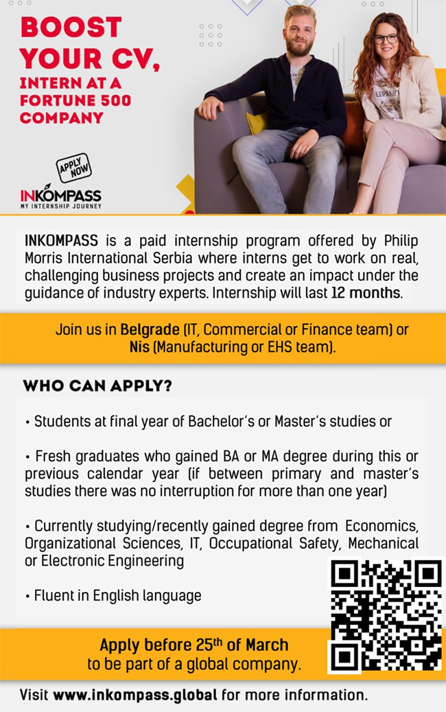 Компаније Philip Morris и ове године организује програм стручне праксе под називом INKOMPASS.