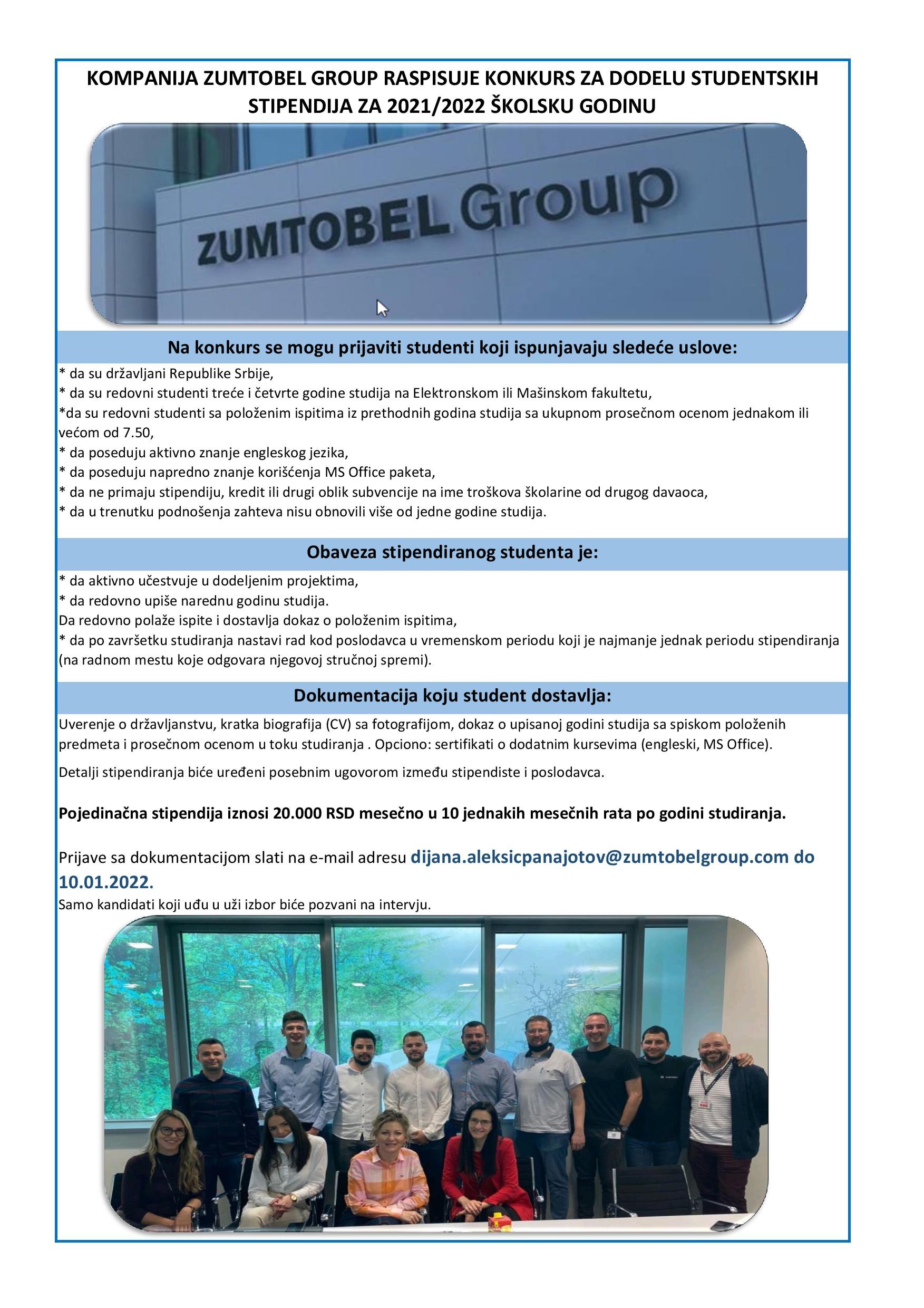 Конкурс за доделу студентских стипендија компаније Zumtobel