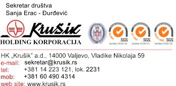 Холдинг корпорација ''Крушик'' а.д. Ваљево расписује