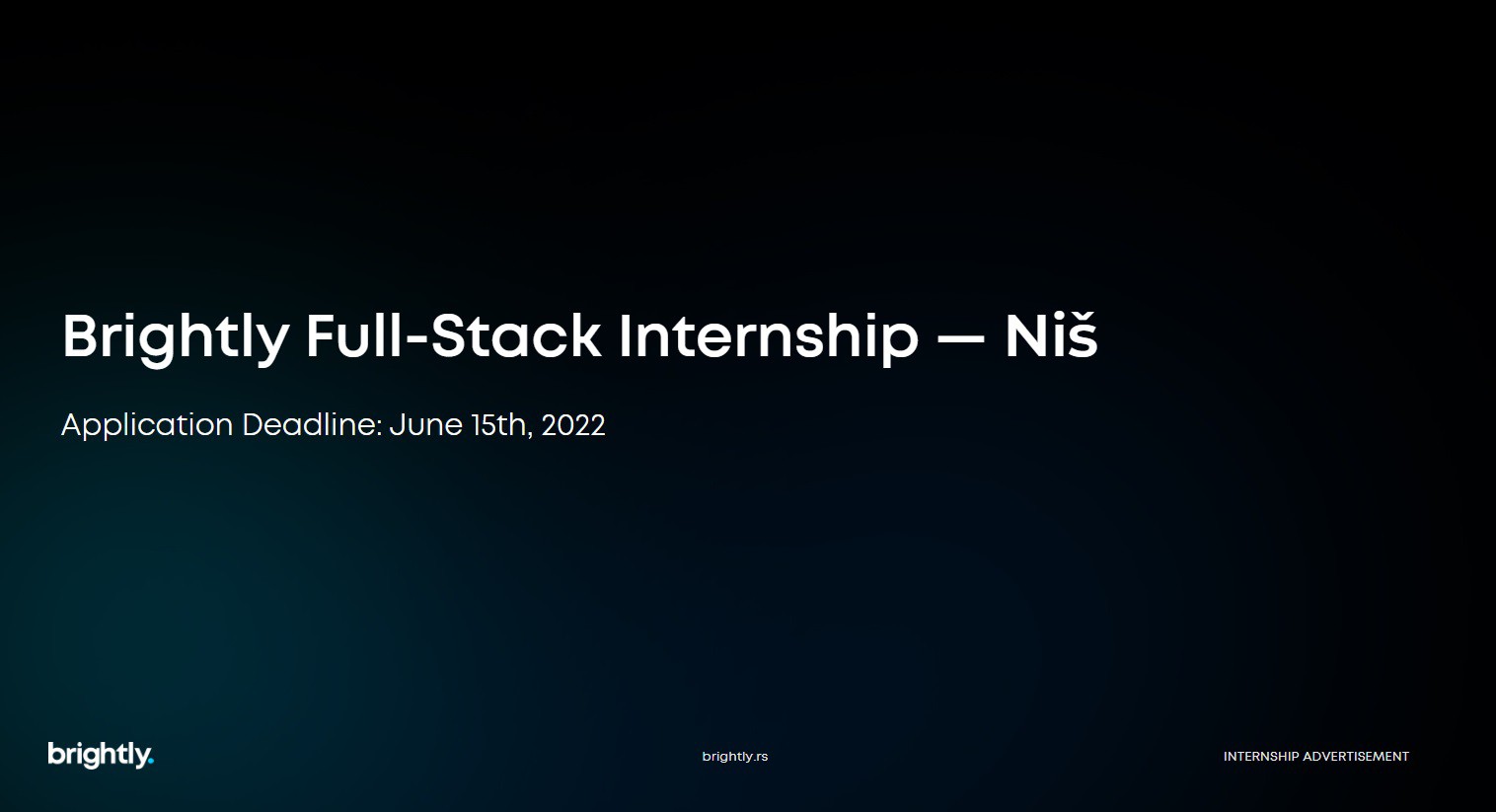 Предвиђено трајање праксе је 3-4 месеца, уз могућност запослења након завршетка исте. Више информација о самој пракси можете наћи на следећем линку - https://bit.ly/BrightlyInternship