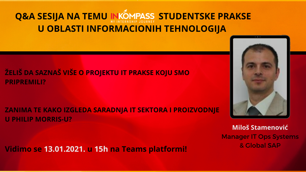 Q&A сесија на тему студентских пракси у области информационих технологија оджаће се у среду 13. јанауара 2021. на Teams платформи (линк) .
