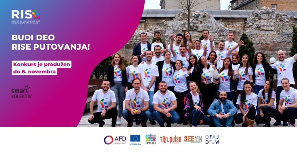 Конкурс за Регионални инкубатор за социјално предузетништво (RISE), програм који младима пружа подршку да развију бизнис који ће да донесе друштвене промене, продужен је до 6. новембра, саопштено је из организације SMART колектив која спроводи овај програм у Србији.