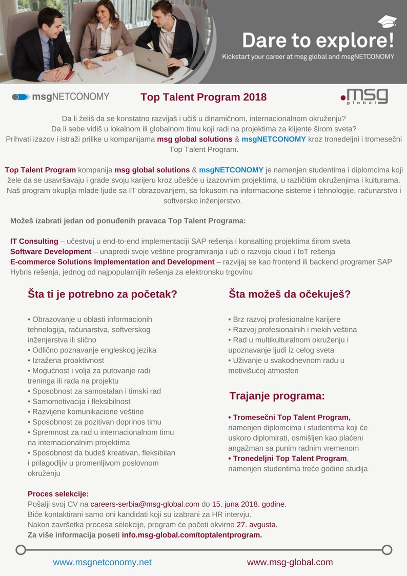 Додатне информације могу се наћи на линку http://info.msg-global.com/toptalentprogram