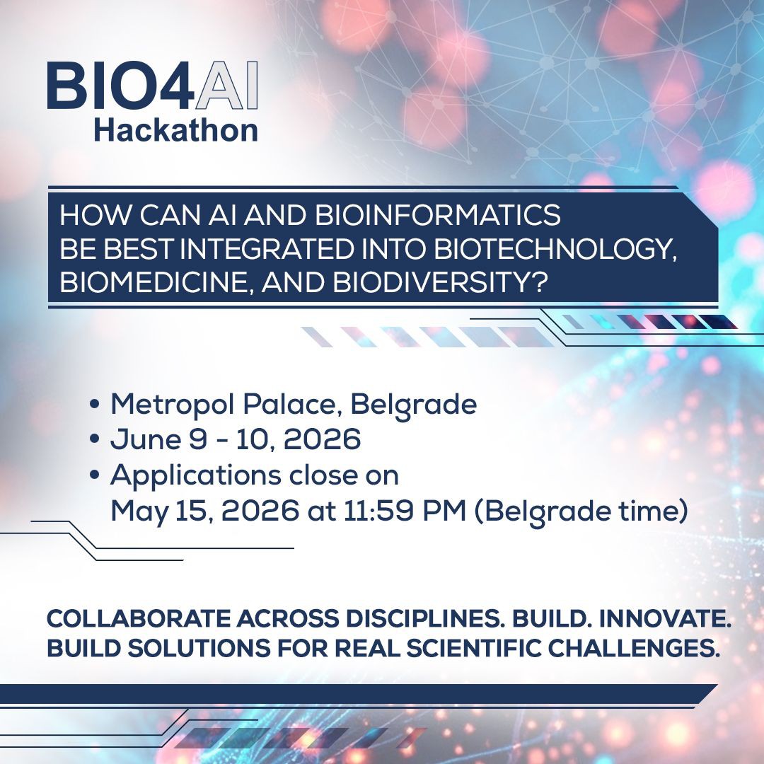 Како се биоинформатика и вештачка интелигенција могу најефикасније интегрисати у биодиверзитет, биотехнологију и биомедицину? То је главно питање које BIO4AI хакатон има за циљ да реши!